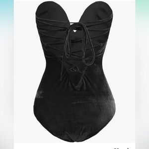 Black velvet bodysuit romper onesie sexy strapless corset lace up jumpsuit rave