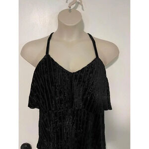 Black velvet halter top with pleats, ruffles, and tie-back straps size M #0258