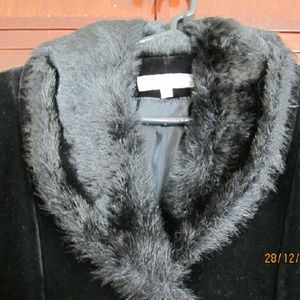 Beautiful velvet coat, fully lined, with faux fur collar and fringes. Very versatile. It has two pockets in the front, and velvet buttons. Very good condition