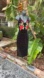 Black velvet velour slipdress with rose appliqué