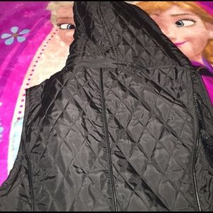 Nice black vest has zipper and buttons and has removable hoodie. Has never been used just took off tags. No stretch
