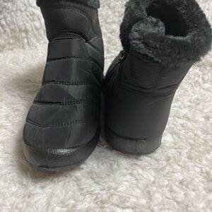 Black water proof slip on snow boots faux fur lining rubber soles EUR SZ40 side zipper pre owned in good used condition clean see all pictures any questions please message.B12