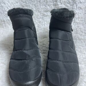 Black water proof slip on snow boots faux fur lining rubber soles EUR SZ40