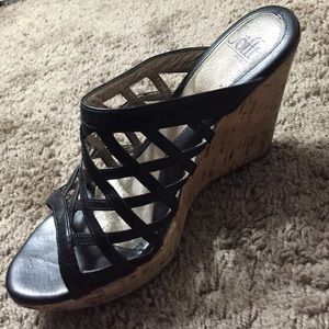 Extra comfy black wedge sandals, EUC. No scuffs or scratches. Perfect for work and fun, padded footbed for all comfort. Offers and bundles welcome!