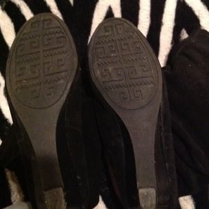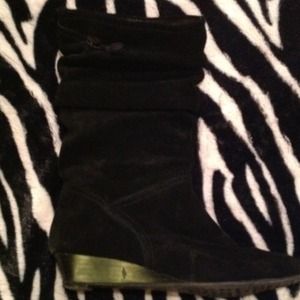 Black wedge slouch boots - suede