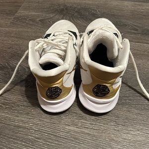 Black white and gold basketball shoes