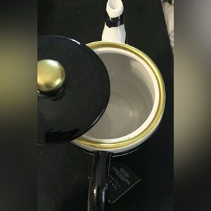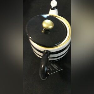 Black white ivory striped black lidded ceramic Tea Pot with gold accents new