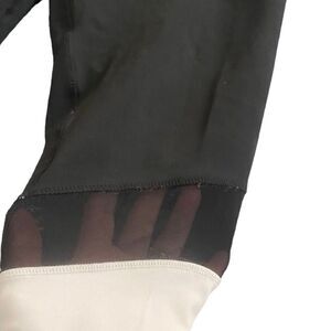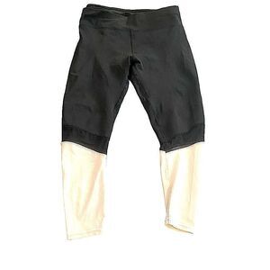 Black white & mesh color block leggings. Stripe of black mesh at the knee. XL