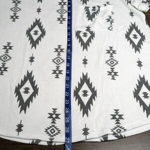 Black & white shirt short sleeves Aztec design blouse, pocket, XL