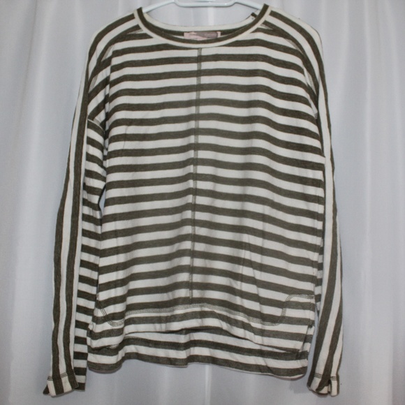 Long sleeved black and white striped top. Side of arms have striped that run from shoulder to wrist.