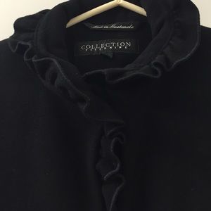 Knee length, wool/nylon/cashmere mix shell, hook and eye closure