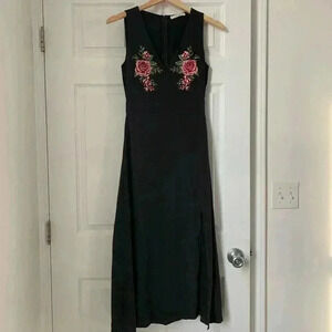 Black with Embroidered flowers ModCloth Jessy B Midi Dress size XS