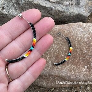 Black with Native Colors Bead Half Hoops, New, Handmade By Me
