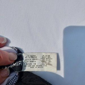Flattering one piece with slimming technology. Side pink stripe shows off your curves or enhanced a more up and down shape. Bought in several sizes and this was not the right one for me. No tags but never worn.