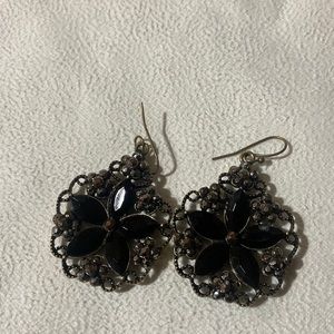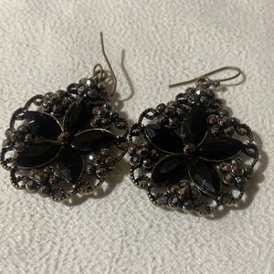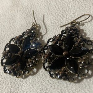 Black with Rhinestone Earrings gorgeous perfect worn that little black dress 1.25x1” approx
