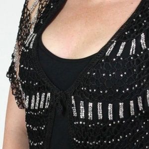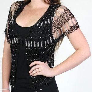 Black with Silver Beads Evening Cardigan