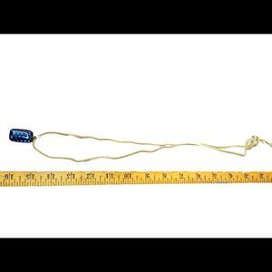Black with blue check silver bale dichroic pendant on tan suede cord