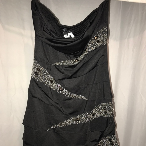 Ikibik brand Size Medium Black Strapless Minidress with pretty sequins and beading accents. Perfect for a night on the town. Gently worn. Excellent condition.