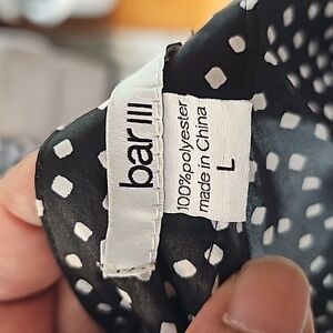Black with white small polka dot dress with middle back out. Gently warn. Good condition. Comfortable. L.