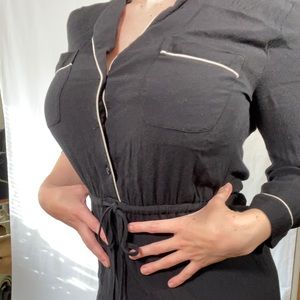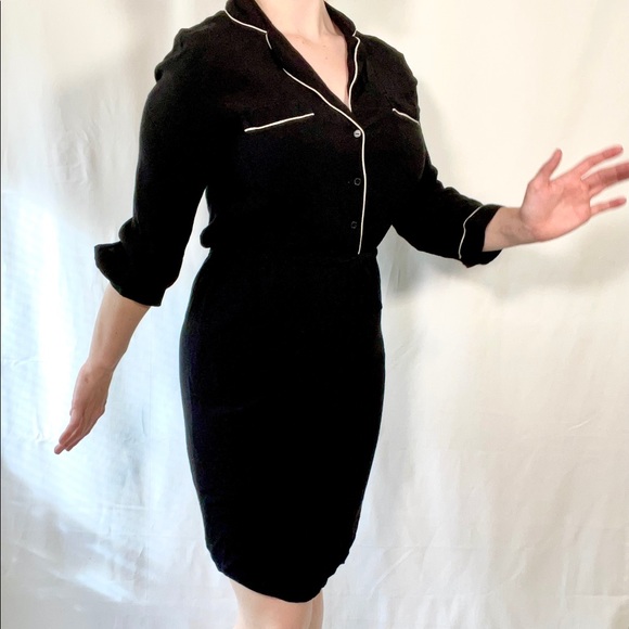 Black Loft dress with three-quarter sleeves, a cinch tie waist, and built-in slip on skirt part of the dress Size small