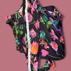 Black y2k stretchy long sleeve dress with floral pattern women's size small