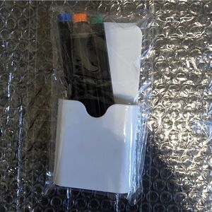 selling at cheaper price because it only comes with 3 acrylic paint pens a magnetic holder for pens and the board. it is missing the erase piece of fabric.