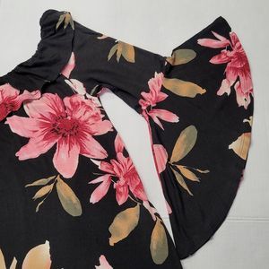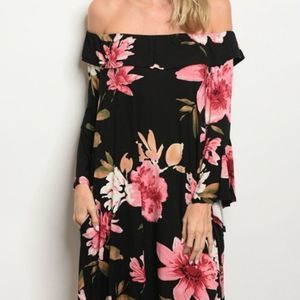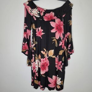 Beautiful long sleeve off the shoulder floral jersey tunic dress.