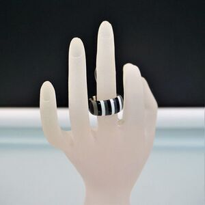 Black And White Striped Ring Retro Mod Plastic Size 6.5 New Tags