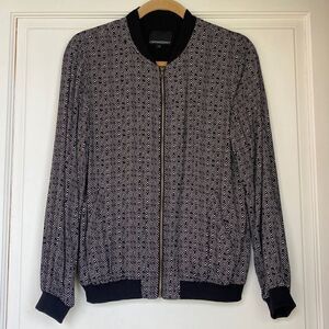 Black And White Zip Front Bomber Jacket By Cynthia Rowley, Women’s Size Small, Medium Weight, Firs Slightly Oversized, Great Used Condition