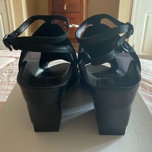 As beautifully streamlined as the musical term which lent the collection its name, 3.1 Phillip Lim's Aria line of footwear is distinguished by fluidly curved cut-outs and mesh insert panels. Distinctively modern, these double strap sandals' focus lies in the uniquely designed heel, which comprises a leather-bound demi wedge seat finished with a brushed metal block.