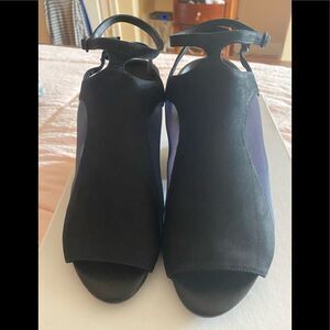 Black 'Aria' Mesh Leather Combo Heel Sandal