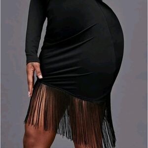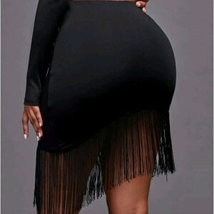 This is a super sexy black fringe asymmetrical skirt. Perfect for the club, Valentine's Day, a Birthday, an Anniversary, the Holidays, or just a night out on the town!