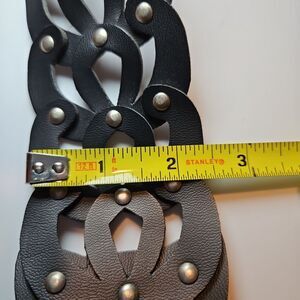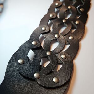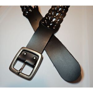 Stylish black belt featuring a durable silver buckle. Perfect for adding a touch of elegance to any outfit.
