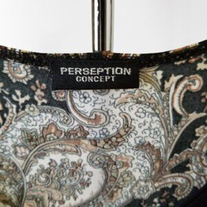 Black/Brown/White Paisley Cap Sleeve Top with Scoop Neck by Perseption Concept