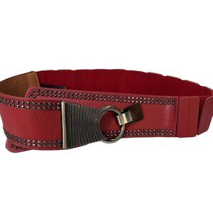 BlackButterfly Wide Elastic Red Belt W/Studded Detail Metal Ring Buckle Size L