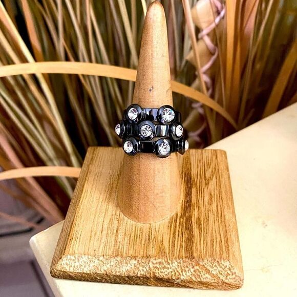Black CZ Stacking Rings Tin Cobalt Size 7&8