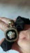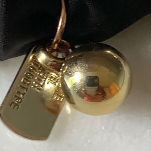 The enameled bloom has a faux pearl center, paired with a gold tone bell and tag that give it a little movement.