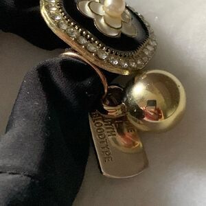 Black Camellia Flower Scrunchie with Charms - Hair Tie Hair Band Ponytail