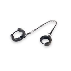 Elevate your style with an edgy twist by wearing a pair of black, chained, double-pierced handcuff hoop earrings! These eye-catching earrings showcase a unique design featuring two huggie hoops linked together by a chain, creating a striking faux-gauged appearance. Ideal for standard pierced ears and double piercing wearers alike! Embrace your individuality with these gender-neutral unisex earrings that balance minimalist elegance with alternative fashion!