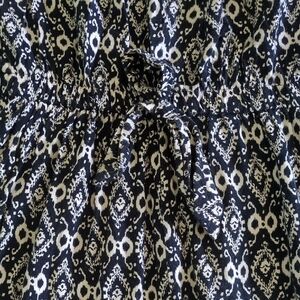 Stylish black and cream patterned jumpsuit perfect for any occasion. Comfortable and chic design.