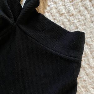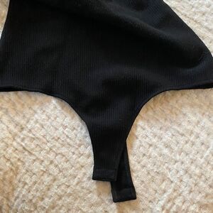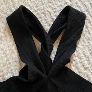 Stylish black bodysuit with a cross-back design. Perfect for any occasion.
