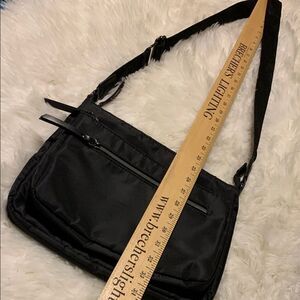 Sleek and versatile black crossbody bag. Perfect for everyday use. Smoke free & Pet free home. See ALL photos for complete description/details. Tons of zipper storage