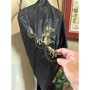 Incredible black kimono. Sleeves and back are embroidered with an incredible Japanese design. Self tie belt. New tags bought in Japan size XXX large but fits more like an extra large.