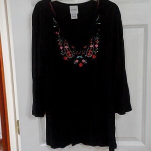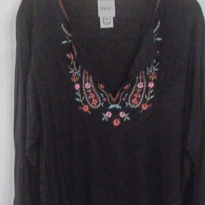 Soft bohemian look top by Even. Long sleeves. Open neck with gorgeous embroidery. EC.