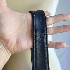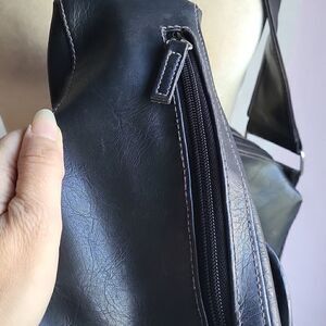 Black Faux Leather Messenger Shoulder Bag, Medium