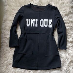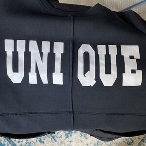 Black Fleece Lined “Unique” Pullover LONG Sweatshirt w/Pockets (Size: Small)