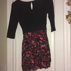 Black/Floral Dress from Target with 3/4 sleeves & cinched Waist & pleated Front Top