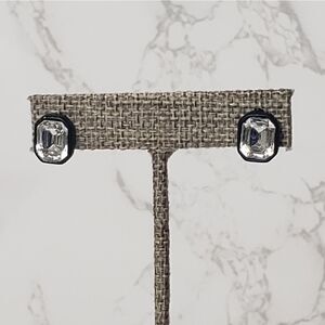 Black Framed Crystal Post Pierced Earrings