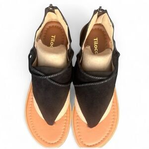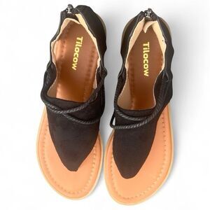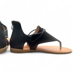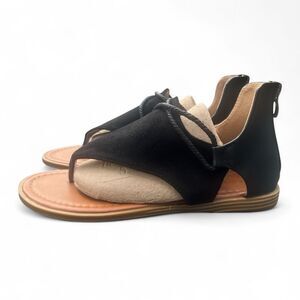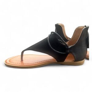 NWOT traditional Roma inspired sandals with rope detail in black synthetic suede upper; unworn and in like new condition! Comfortable & lightweight, gladiator style flat sandals with back zip closure