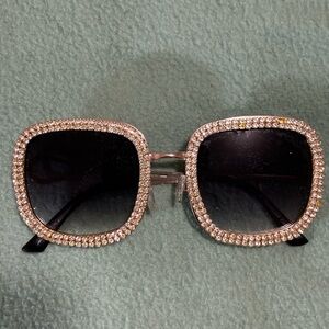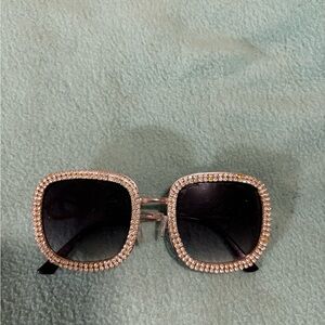 Women's Black/Gold/Silver Square Oversized Sunglasses with Diamond Stud Decorated Lens. The Lens are black.